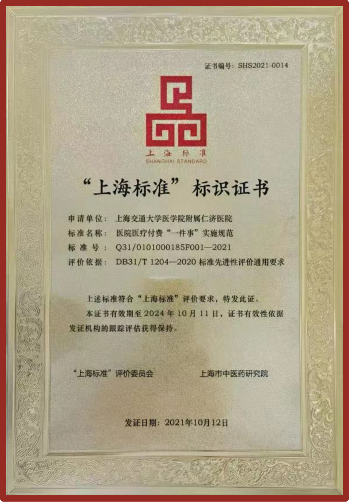 在这样的成效下,仁济医院积极将“仁济经验”复制推广,编制形成《医院医疗付费“一件事”实施规范》获得2021年“上海标准”标识认证,2022年地方标准审定通过。同时,医疗付费“一件事”项目还获得上海申康医院发展中心颁发的“医联工程优秀成果奖”,在上海地区及医联体协同发展中获得认可。