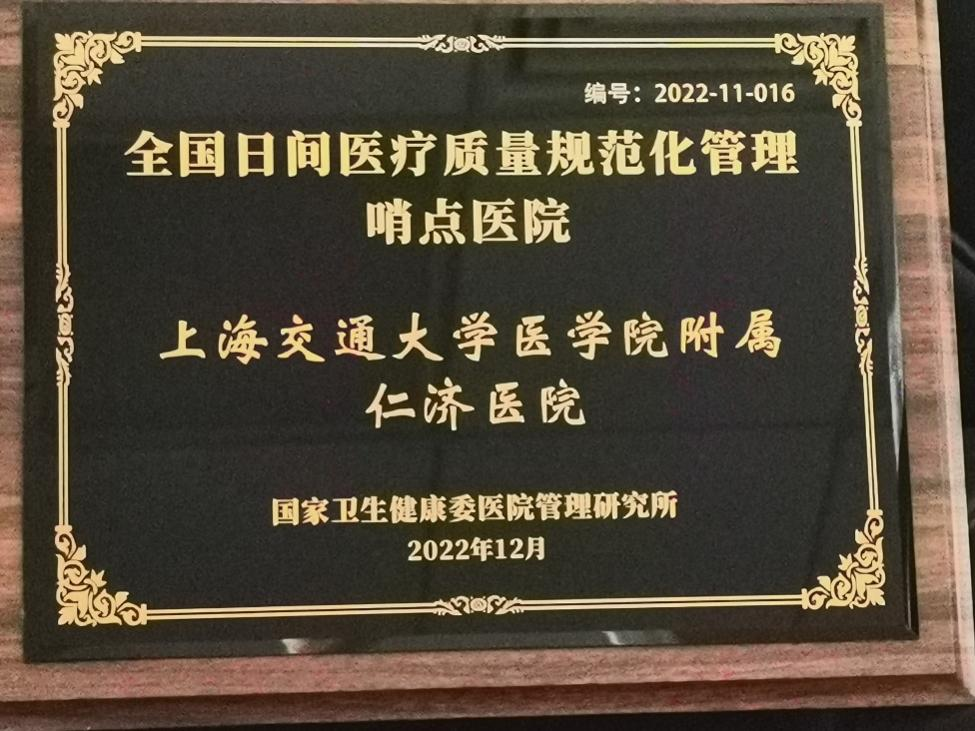 图片3:2022年12月,仁济医院获评全国首批日间医疗质量规范化管理哨点医院。仁济医院持续提高日间医疗质量规范化管理水平,以期起到引领和示范作用,带动全国日间医疗规范化发展的内涵建设。