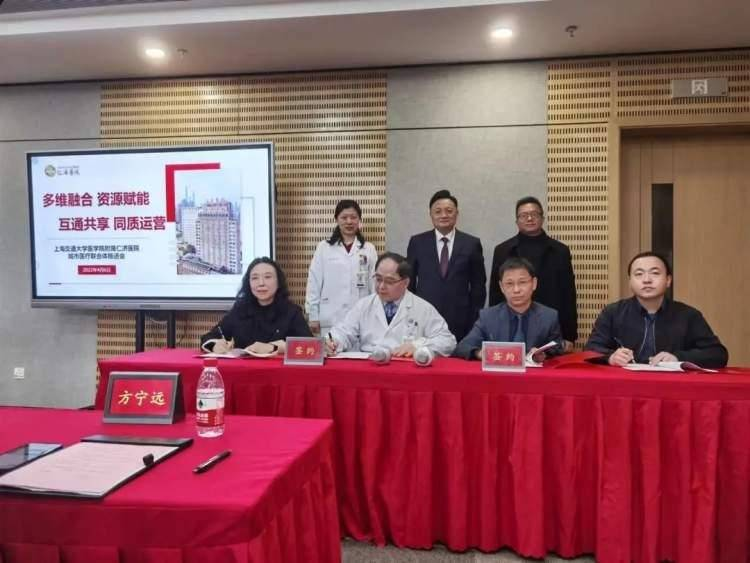 图片1:2023年4月,召开“多维融合、资源赋能、互通共享、同质运营”城市医疗联合体推进会,与11家社区医院签约,打造三甲医院优质医疗资源下沉的“仁济模式”。