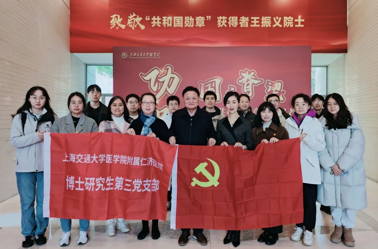 为深入学习贯彻习近平总书记在国家勋章和国家荣誉称号颁授仪式上的重要讲话精神,践行“人民至上、生命至上”理念,大力弘扬王振义院士医学家、教育家和科学家的精神,近日,我院党委书记郑军华,党委副书记、纪委书记李剑带领研究生第一、第二、第三党支部部分党员、入党积极分子和学生骨干前往功勋·国之脊梁——致敬“共和国勋章”获得者王振义院士图片展参观学习。