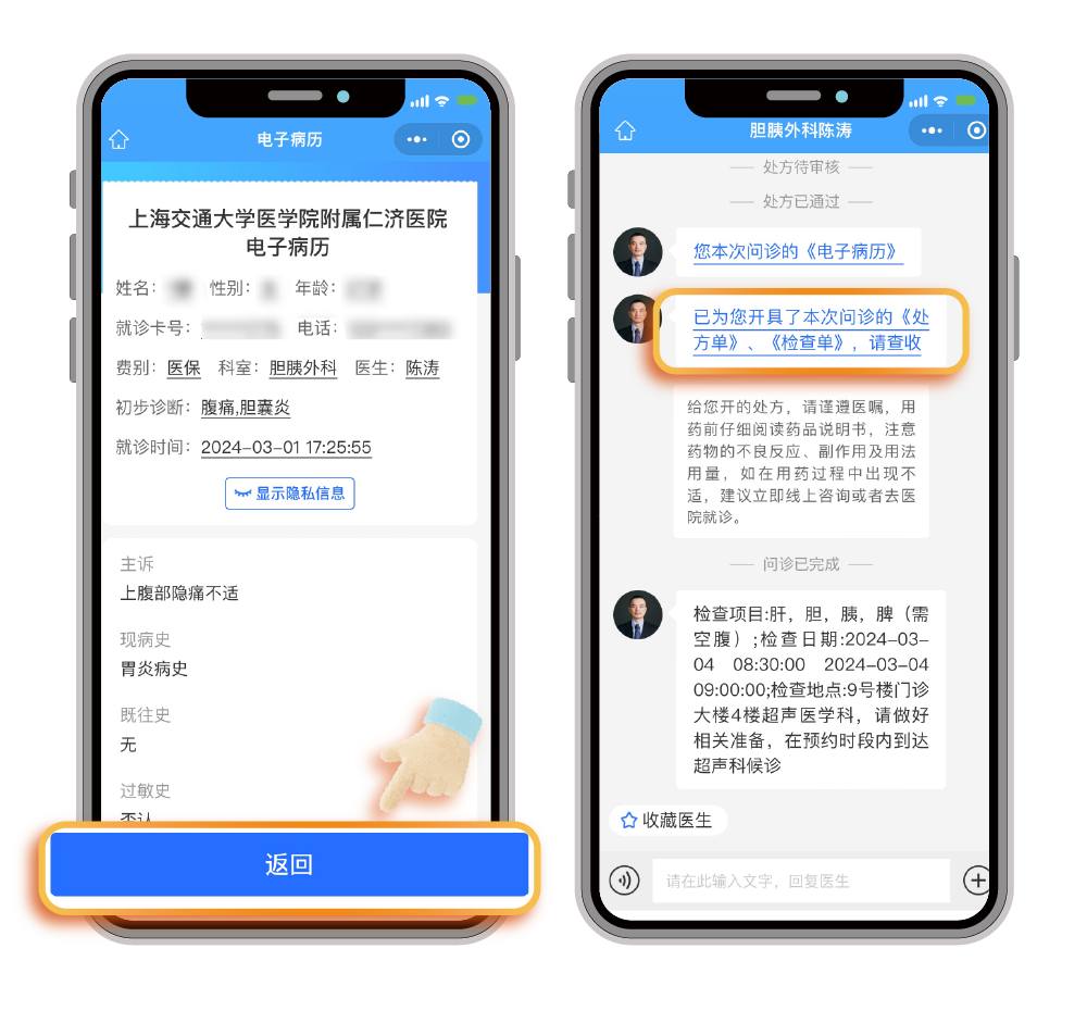 若医嘱中开具相关检验检查,请按照短信指引的地点和预约时间来院完成检查。