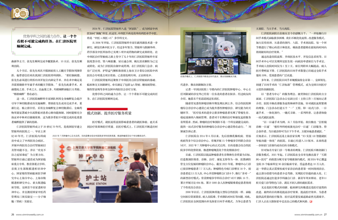 2024年,仁济医院肾脏科入选“国家队”,成为国家中西医协同“旗舰”科室。在这里,中西医不再是简单的西医牵手中医,将是“中医+西医+X”多学科交叉。