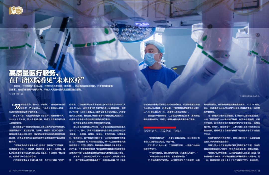 吴女士是仁济医院多年来救治的众多疑难病例中的一个。仁济医院的创新发展和多学科合作,最终体现在救治能力上,也体现在一个个鲜活的故事中。