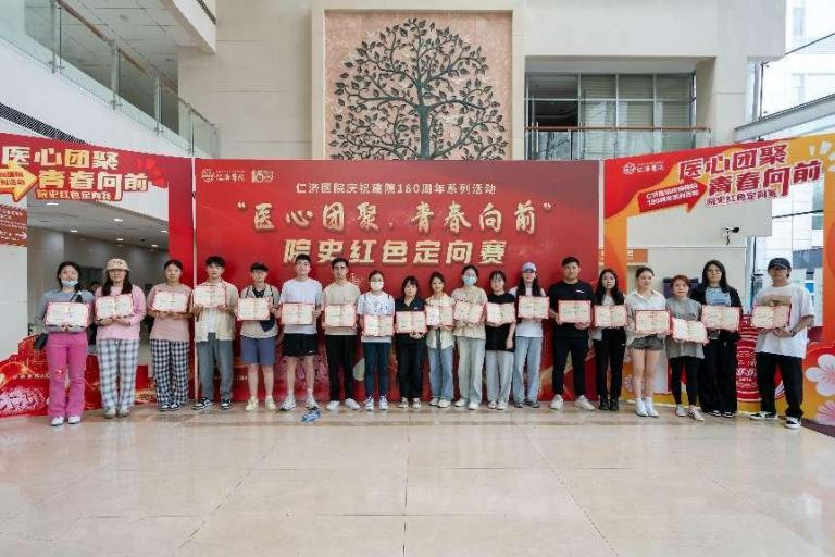 为庆祝仁济医院建院180周年,激励动员广大青年传承发扬五四精神,由仁济医院团委、党委宣传处主办的“医心团聚,青春向前”——院史红色定向赛活动于2024年5月19日下午正式拉开帷幕。来自仁济医院党支部、团支部的70余名青年火热集结、共赴挑战。