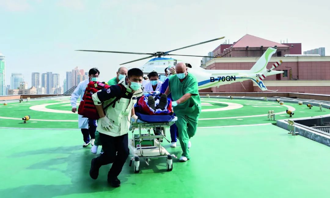 图:仁济医院直升机平台进行空中救援演练。
