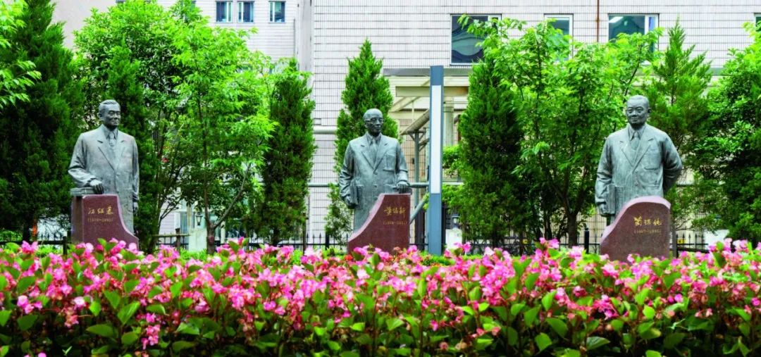 图:仁济医院学科奠基人江绍基、黄铭新、兰锡纯铜像。