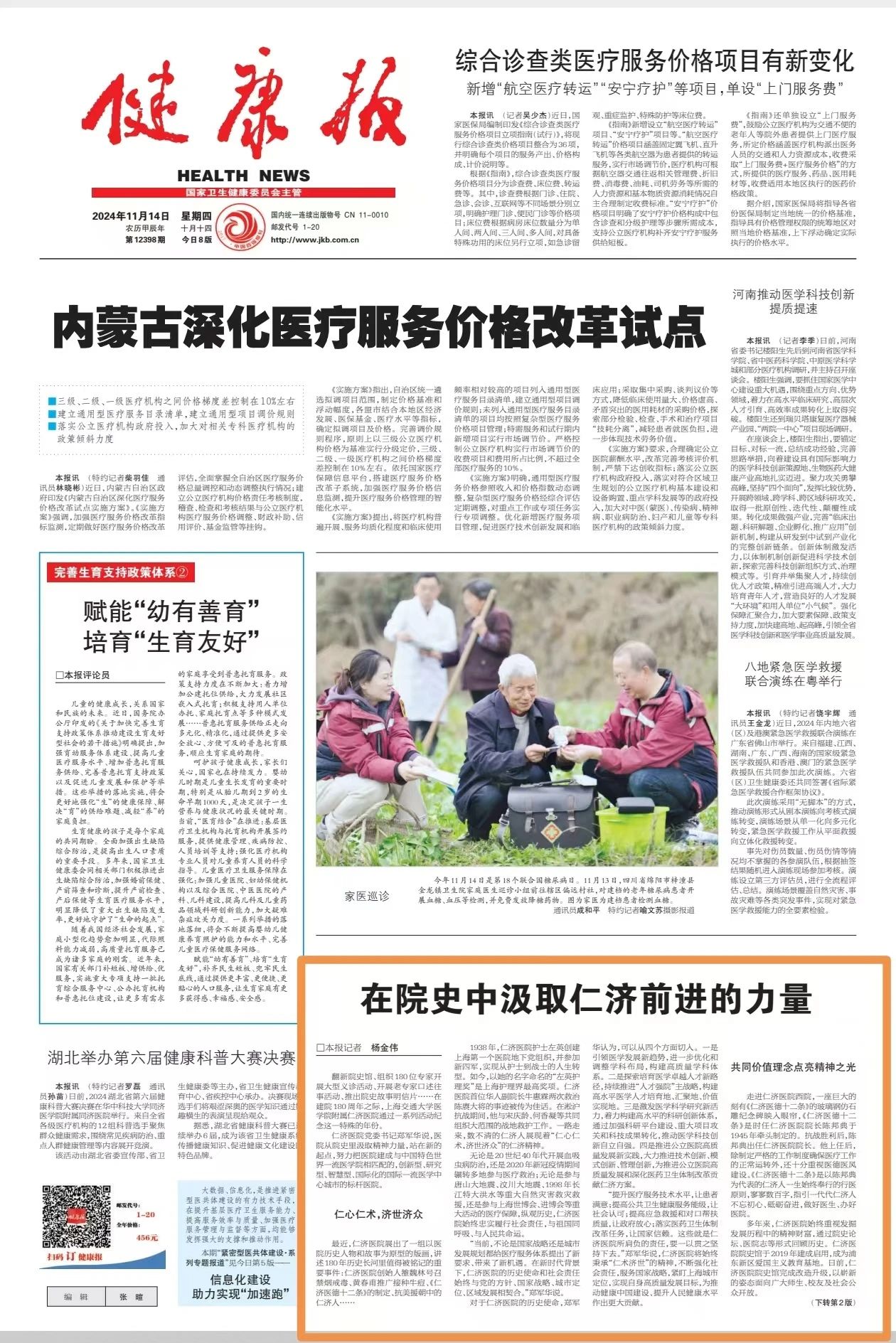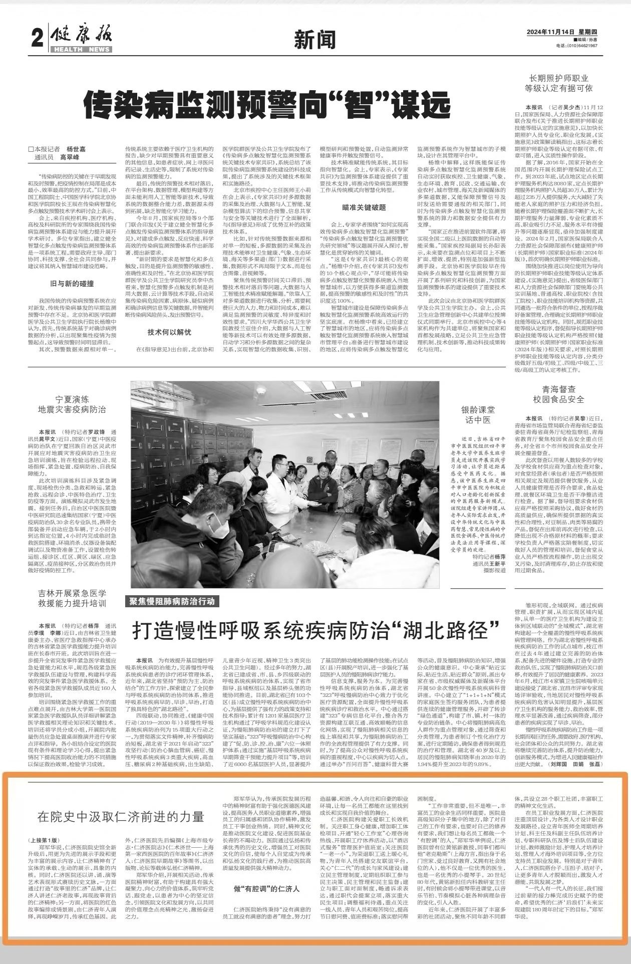 ▲《健康报》2024年11月14日头版转2版