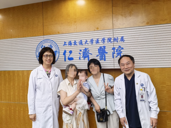 Shortly before Renxiao’s first birthday, Ms. Zhou returned to Renji Hospital  with her daughter and mother to express gratitude. Holding Renxiao, she and her mother presented flowers and a silk banner to Drs. Zhang Xiaohua, Zhang Yu, and Jia Feng. The medical team inquired about Ms. Zhou's recovery with concern. When their eyes fell on the healthy and lively Renxiao, smiles of relief lit up both the doctors’ and the family’s faces.