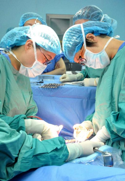 Chief Physician Zhang Yu of the Department of Obstetrics and Gynecology (first from the right) is performing a cesarean section.
