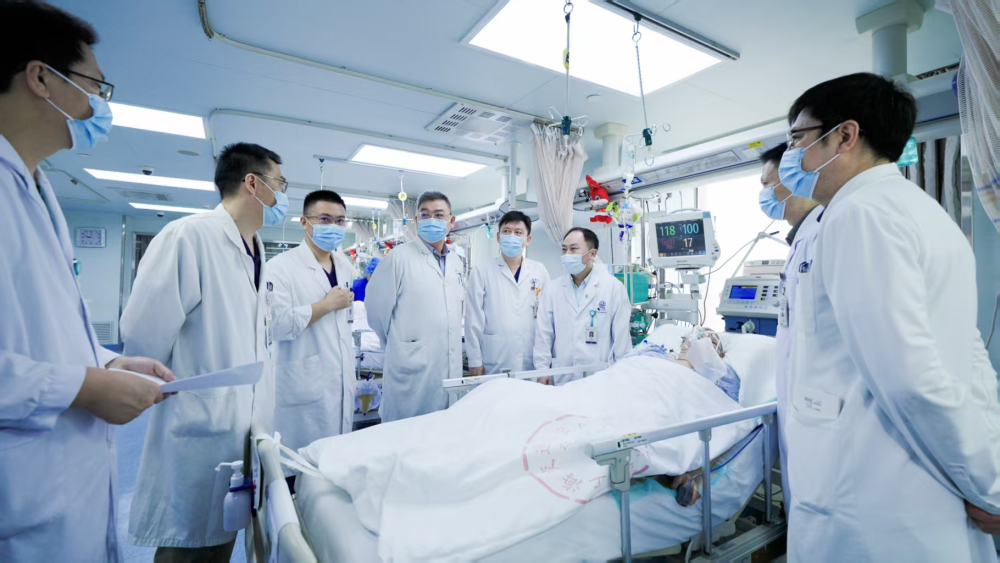 Chief Physician Zhang Xiaohua of the Department of Neurosurgery at Renji Hospital and others are making rounds of the wards.