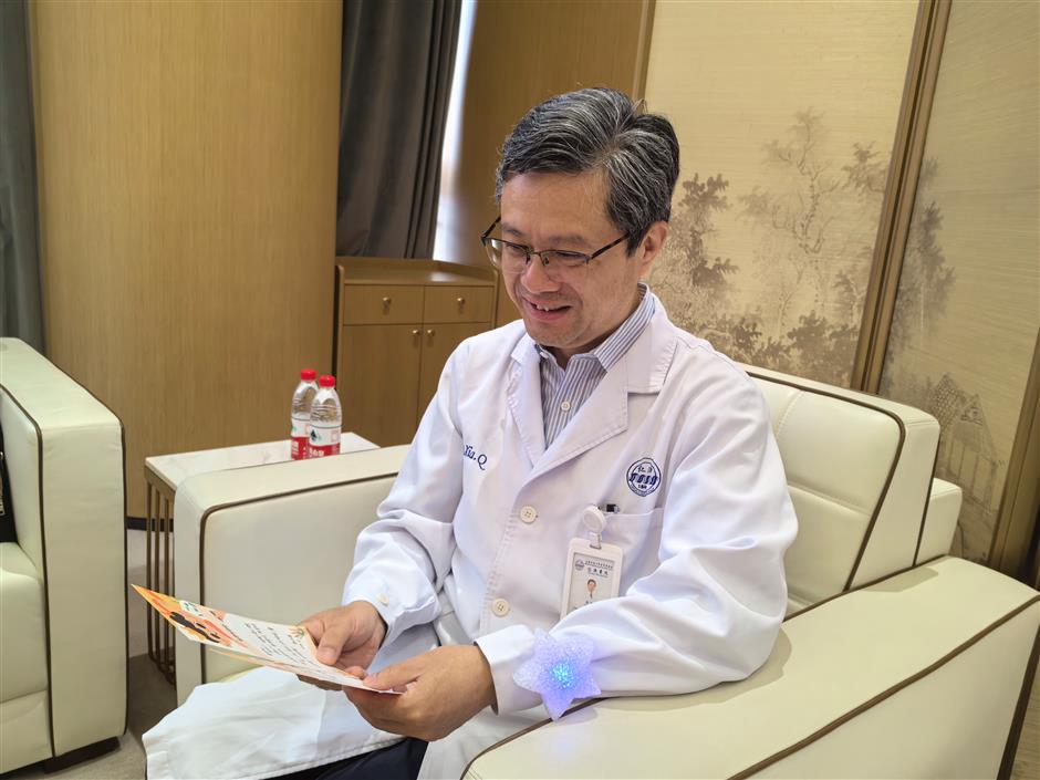 Dr Xia Qiang, president of Renji Hospital, reads letters from his child patients.
