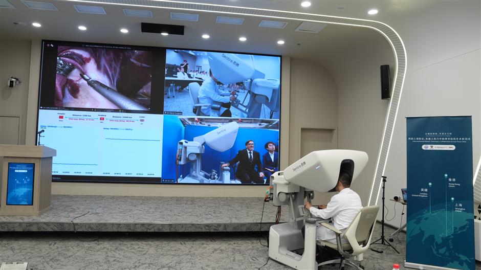An innovative robotic surgery involving medical teams from Shanghai, Hong Kong and London was successfully completed recently, testing the possibility of super long-distance surgery as well as the quality of China-made medical equipment.
